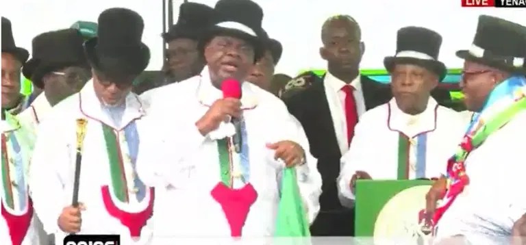 The APC National Chairman, Nentawe Yilwatda, urged Governor Diri to deliver Bayelsa State to President Bola Tinubu in the 2027 general election, saying, “Take this as a symbol of strength, symbol of unity, unite our party, make it stronger and bring all the votes”.