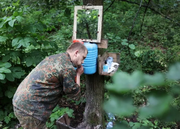 Around the ruins, local charitable organisations have set up posts offering families food and drink.