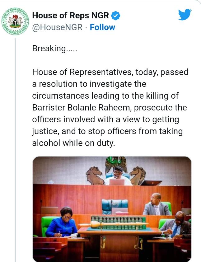 The house of representatives also concluded to ensure the prosecution of the alleged killers, who were alleged to be police officers, with the hope of getting justice.