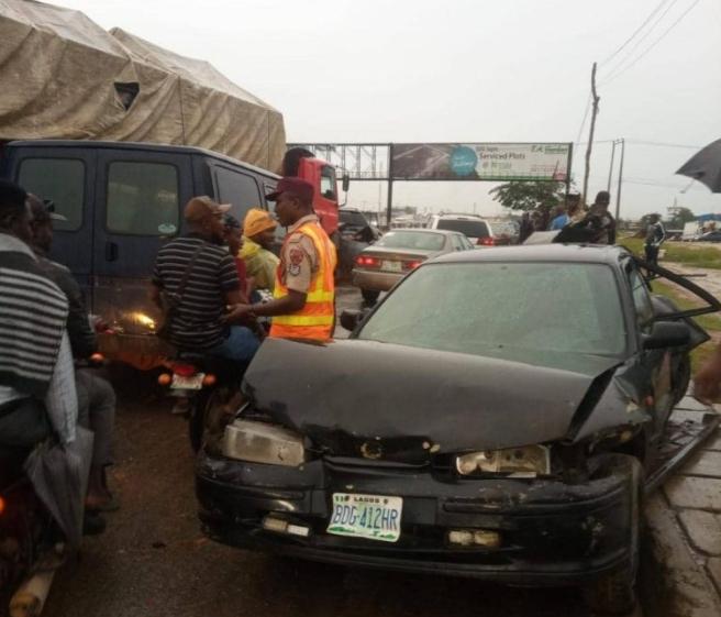 The crash which took place opposite The PUNCH place, KM 14 of the expressway, involved a truck and several other vehicles on the road.