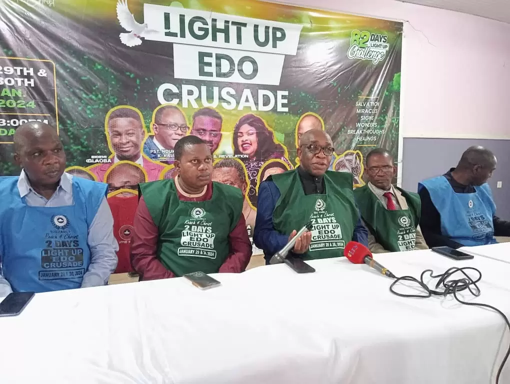 Briefing newsmen in Benin in preparation of the Light Up Edo Crusade, Pastor-in-charge of Region 38 of the RCCG, Bode Olojede, said the crusade, being an interdenominational programme was aimed at bringing the body of Christ and to make sure the light of Christ shine the world over.