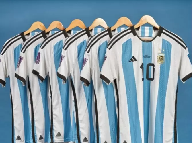 There were three bids in total on what auction house Sotheby’s described as “Lionel Messi’s match-worn iconic light blue and white, vertical striped Argentina shirts from his historic 2022 FIFA World Cup run”.