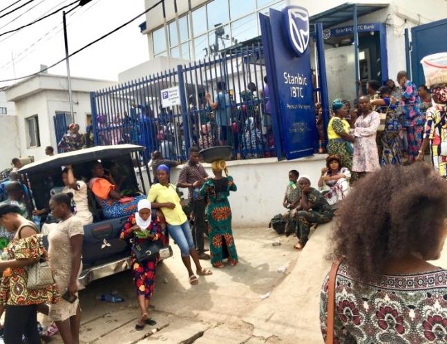Among the crowd are men and women included the aged who have to endure the scorching sun in an attempt to withdraw some money from their various banks.