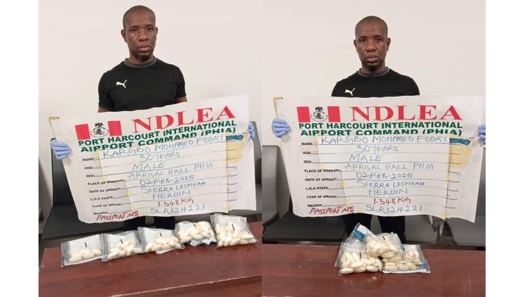“A body scan confirmed he had ingested illicit drugs, and under observation, he excreted 62 wraps of heroin weighing 1.348 kilograms in five sessions,” Babafemi stated.