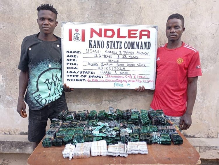 In Kano, NDLEA operatives on February 3 arrested Usaini Salisu and Yahaya Mu’azu, both 23, at Gadar Tamburawa along Zaria Road, recovering 15,396 tramadol pills hidden in a gas cylinder.