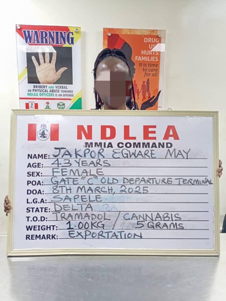 “At least, two suspects behind some of the aborted missions at the Murtala Muhammed International Airport, MMIA, Ikeja Lagos have already been arrested. One of them is a 43-year-old businesswoman, Jakpor Egware May, who was nabbed at the Gate ‘C’ departure hall of the Lagos airport while attempting to board an Air France flight to Italy on Saturday, 8th March 2025.